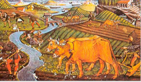 Entonces si encuentras la relación entre el dinero que tienes, que fueron los $35 observa que en el primer caso se multiplica por 5 el montón de naranjas y en el segundo caso, se multiplica por 7, así es como se llega a 25 y 21 en cada caso.