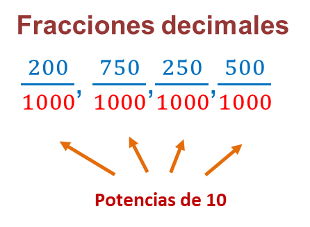 Cuando una fracción tiene como denominador a 10 o a uno de sus múltiplos, estás obteniendo fracciones decimales.