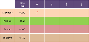 Ahora empieza a hacer las conversiones. Si la receta te dijera que se usa una quinta parte de un kilo para hacer una sola porción de machaca, ¿Cuál marca escogerías?
