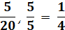 Y por último se simplifica al máximo dividiendo el numerador y denominador de nuevo entre 5 para obtener su equivalente en número fraccionario.