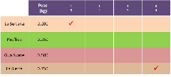 Al registar que 500 gramos equivalen a medio kilogramo, la tabla queda completa.