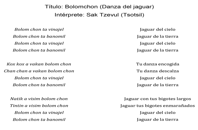 Bolomchon es una canción que representa a los pueblos tzotziles de Chiapas, la letra es una adaptación de otro grupo de rock llamado Vayijel. La composición original es de Tuluk, quién se inspiraba en música tradicional y escribió la letra Jaguar del cielo, jaguar de la tierra. El jaguar es muy representativo para los tzotziles.