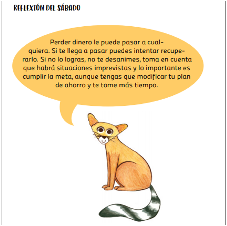 Como puedes ver, a cualquier persona le puede ocurrir perder dinero, ya sea en artículos, propiedades o dinero en efectivo, pero no debe abatirse y debe generar un plan para recuperar esa pérdida o daño, así que es importante desarrollar el hábito del ahorro. Puedes descargar el cuento completo en el portal de BANXICO educa en la liga: