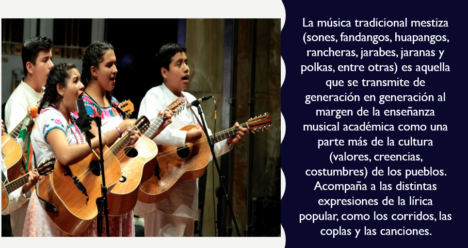 ¿Recuerdas el ejemplo de las cuartetas con música de huapango? Pídele a tu mamá, papá, hermanos o abuelitos que te enseñen una canción tradicional de tu pueblo que sea utilizada en fiestas o celebraciones, o una copla, corrido o refrán, en el que puedas recrear las letras de los textos originales en tu propia lengua y cambiar la música original.