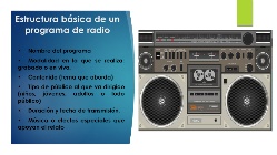 Aprendizaje esperado: Investiga sobre la estructura de un programa de radio.