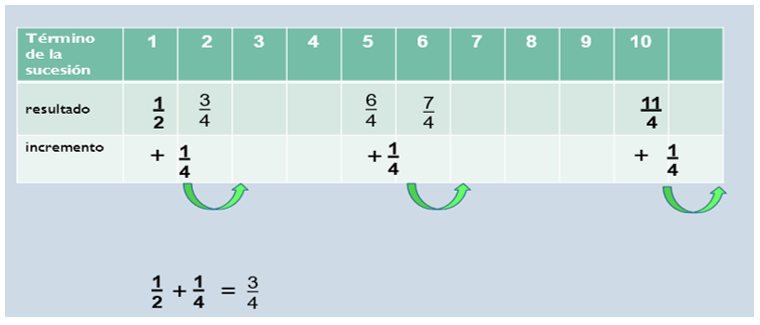 Como puedes observar, dice que esta sucesión se genera al sumar un cuarto; entonces Dulce Valeria sumó un medio más un cuarto para obtener el segundo término de la sucesión que es 3 cuartos, y los demás términos son fáciles de obtener. ¿Tú cómo lo habrías resuelto?