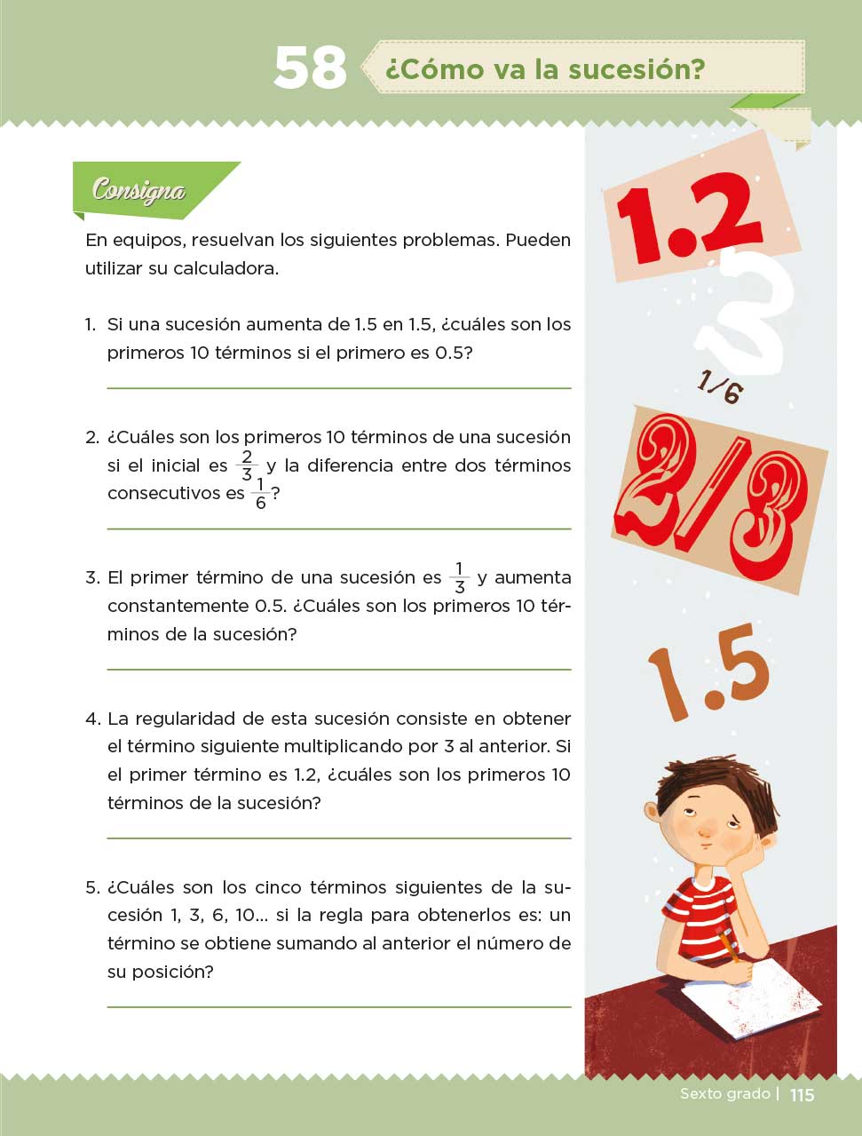 Considera que al buscar información sobre las sucesiones puede encontrarse un enlace donde hay estudiantes de diversas escuelas de sexto grado que están practicando matemáticas en un club. Es muy interesante, es el club de los genios matemáticos. Los alumnos y las alumnas de sexto grado ponen retos en los que practican matemáticas y sobre todo ellos se ponen retos para jugar y aprender.