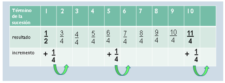 Así es, el número que cambia es el de los décimos y los enteros, pero, ahora realiza la sucesión con fracciones.