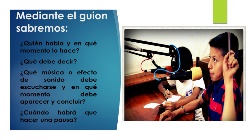 Énfasis: Elabora un guion radiofónico para difundir las palabras de la experiencia.