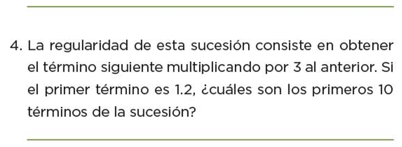 Entonces, puedes considerar los otros términos de la primera sucesión y generar los de la segunda sucesión, sabiendo que 1.2 es la décima parte de 12 y que la regularidad en ambas sucesiones es la misma.