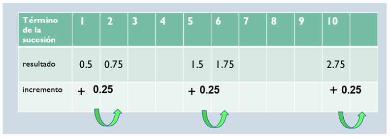Nuevamente estás usando una relación entre los números para obtener los términos de la sucesión.