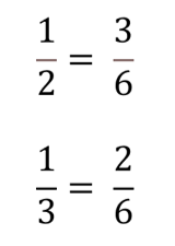 Si conviertes en sextos las dos fracciones, la obtención de los términos es mucho más sencilla. Observa, ¿A cuántos sextos equivale un medio? Equivale a 3 sextos y un tercio es equivalente a 2 sextos.