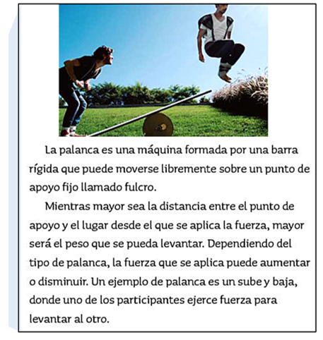 ¿Pudiste identificar la máquina simple con la que funciona el sube y baja? ¿Tienes la respuesta? Es la palanca.