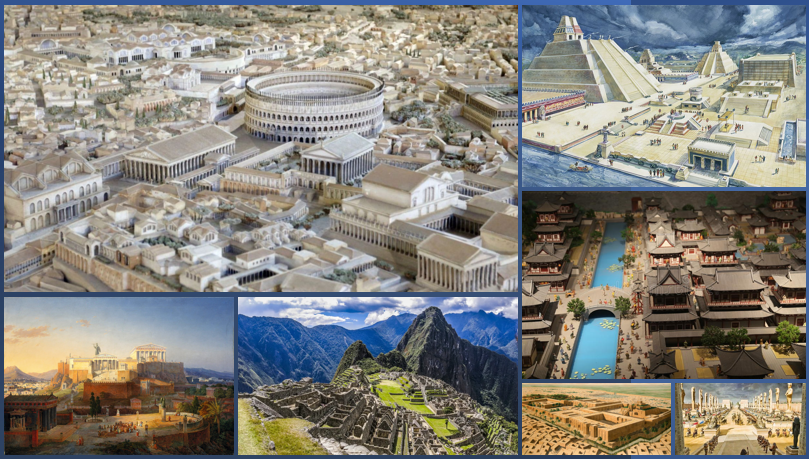 Recuerda que hubo ciudades como las construidas por civilizaciones mesopotámica, egipcia, china, griega, romana, mexica, inca, entre otras.