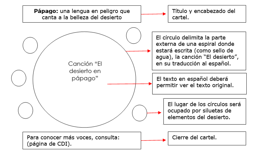El último punto, donde se argumenta, ¿Por qué elegí esta lengua? En este caso fue el que orientó la construcción del cartel, pues el porqué se optó por el pápago, se volvió el propósito para difundirlo.