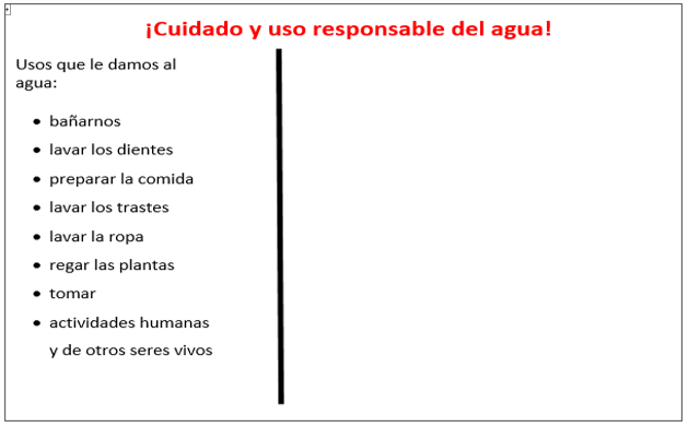 - Aprendiste sobre el uso y cuidado del agua, su importancia para las actividades diarias, industriales y seres vivos.