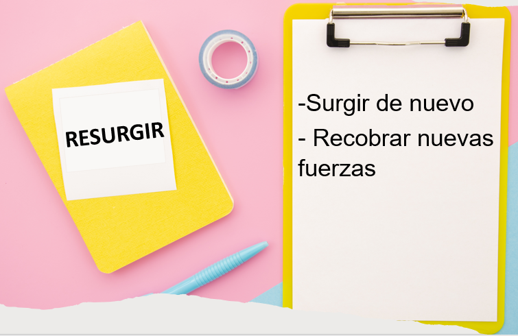 Ahora retoma el significado de la palabra resurgir. Significa “Surgir de nuevo” y “Recobrar nuevas fuerzas”.