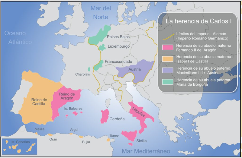- Por ser nieto del emperador, se convirtió en el monarca del Sacro Imperio Romano Germánico, que abarcaba los actuales territorios de Alemania, Austria, Hungría y los Países Bajos.