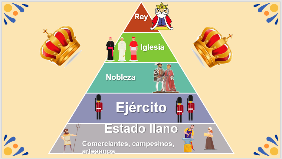El rey no gobernaba solo, contaba con el apoyo de consejeros y ministros que trabajaban directamente para él; de la nobleza, es decir, de otros nobles que recibían favores del rey; de la Iglesia, que lo apoyaba en las funciones de mantener el orden social y espiritual, y del ejército, que en este periodo se fue consolidando gracias a que era el encargado de llevar a cabo las conquistas militares de nuevos territorios.