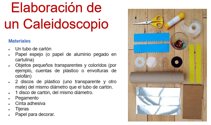 Vas a elaborar un caleidoscopio con ayuda de algún familiar, te servirá como espejo el papel aluminio, ya que, por sus características metálicas y su textura lisa, ayuda a que se reflejen los objetos.