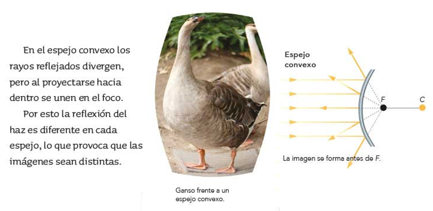 Como puedes ver, en los espejos planos los rayos se reflejan sin juntarse ni desviarse, en los cóncavos se reflejan hacia el centro y en los convexos se dispersan.