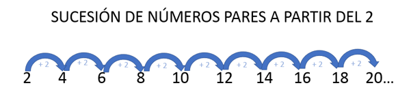 Observa los primeros diez términos que forman la sucesión de números pares.