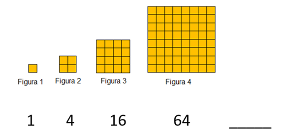 Si anotas con números ese crecimiento obtendrás 1, 4, 16, 64 ¿Cuántos cuadrados tendrá la siguiente figura a ésta con 64 cuadritos?