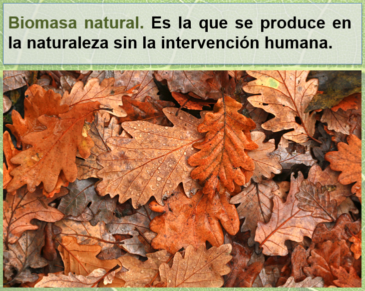 - Biomasa natural. Es la que se produce en la naturaleza sin la intervención humana.