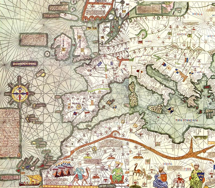 A partir del siglo XIII en las prósperas ciudades italianas, aparecieron un tipo de cartas náuticas que fueron elaboradas en un principio por marineros y en ellas se ilustraban los puertos, las distancias entre ellos, las direcciones a seguir entre cada puerto, peligros marítimos, bancos de arena, arrecifes y anclajes.