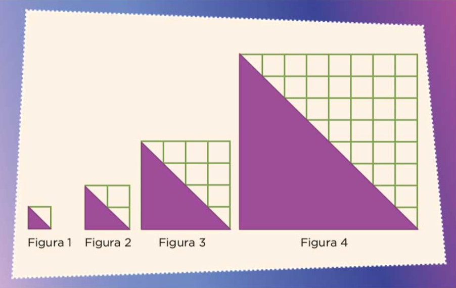 Observa las 4 figuras y di qué es lo primero que observas, pues lo primero que se observa son triángulos y lo segundo es que se van haciendo más grandes. Exacto se ven triángulos, pero es importante que tomes de referencia la cuadrícula que los acompaña, ya que eso te permitirá encontrar más fácil la sucesión.