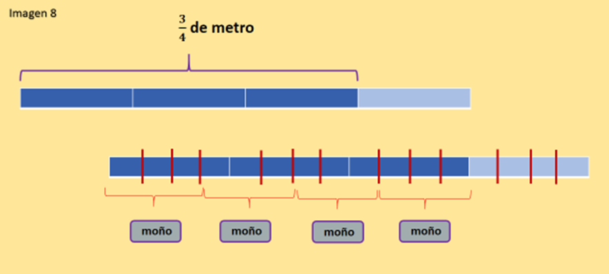 Así que tenemos que considerar el otro cuarto de metro que no hay para saber qué parte del entero es cada pedazo.