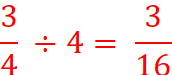 Por lo tanto, podemos decir que, dividir una fracción, entre un número entero equivale a multiplicar su denominador por ese número entero y el numerador queda igual.