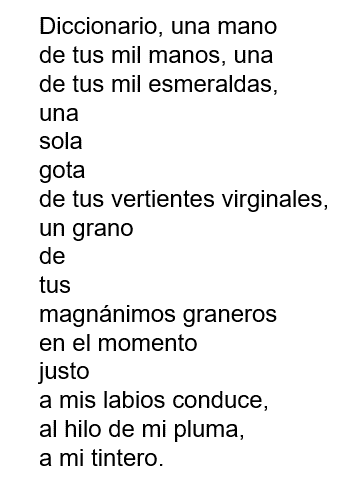 Es posible tanto escribir sobre cualquier tema como expresar cualquier emoción y sentimiento, y los recursos del lenguaje están al alcance de todos. ¡Qué mejor ejemplo que “Oda al diccionario”! Al respecto, quisiera resaltar de pasada otra frase de Paul Valéry para que la tomes en cuenta cuando estés escribiendo tu poema.