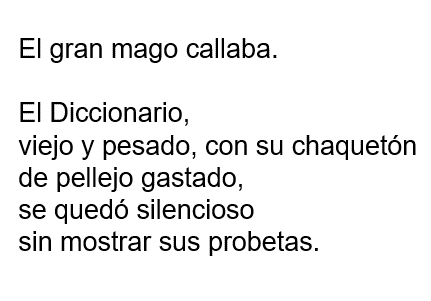 ¡El tumbaburros! Es lo menos que podías hacer por él después de toda la ayuda que te ha brindado en la sesión. El texto se llama “Oda al diccionario”, fue escrito por Pablo Neruda y pertenece al libro Nuevas odas elementales, publicado en 1954. Mientras lo lees, te pido por favor que te dispongas a disfrutarlo y que atiendas, igual que en las sesiones pasadas, a los sonidos y al ritmo, y no sólo al sentido del discurso.