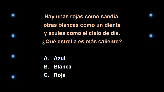 Más adelante irás respondiendo preguntas de acuerdo al mensaje que acabas de leer, son preguntas sencillas acerca de lo que iremos revisando, y si la respondes bien ganarás estrellitas, como las del universo.