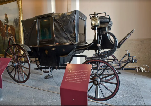 This carriage was used from 1863 to 1867. Este carruaje fue usado por Benito Juárez de 1863 a 1867.