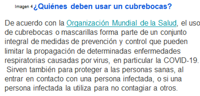 Dice que: el uso del cubrebocas forma parte de un conjunto integral de medidas de prevención y control que pueden limitar la propagación de determinadas enfermedades respiratorias causadas por virus, en particular la COVID-19